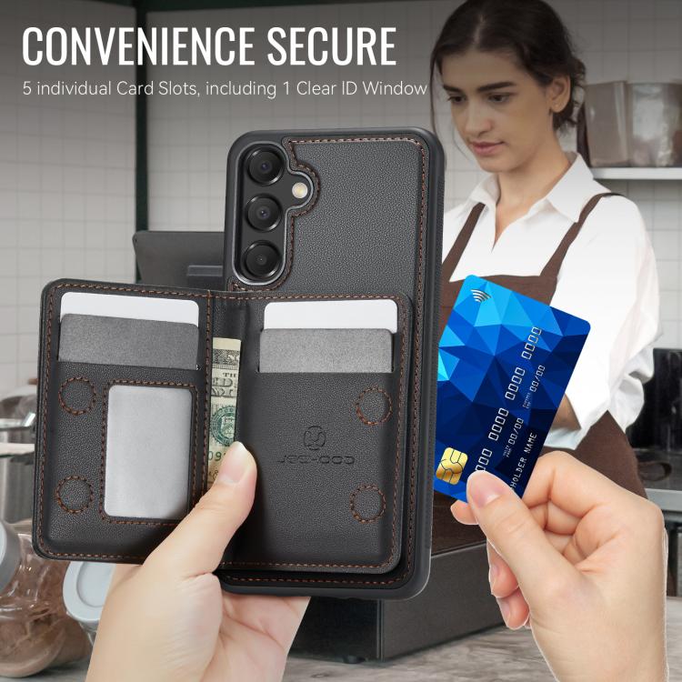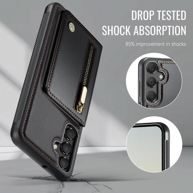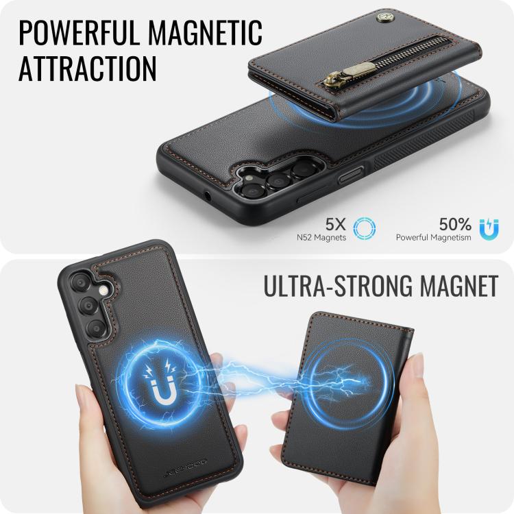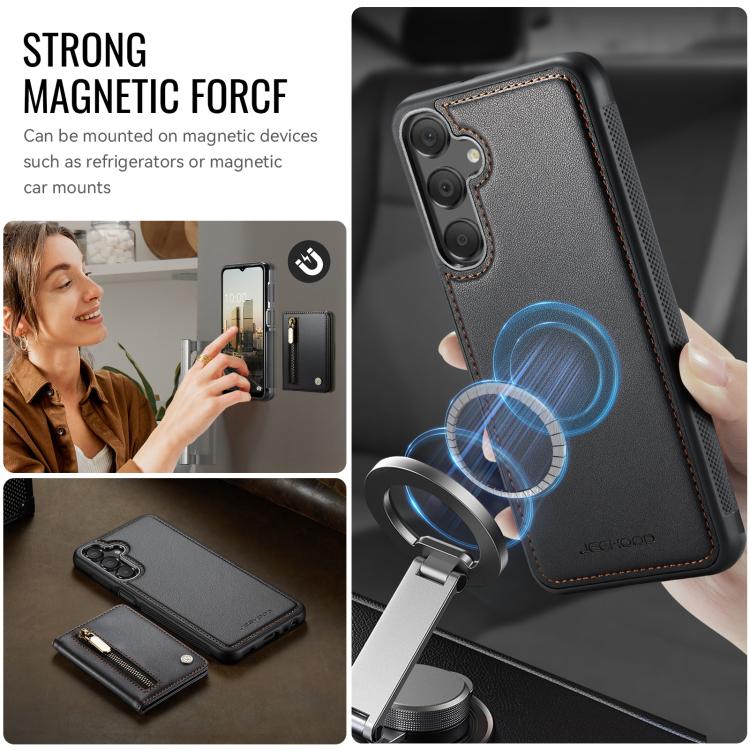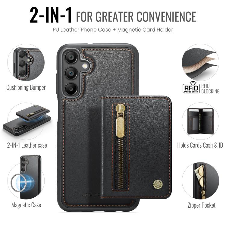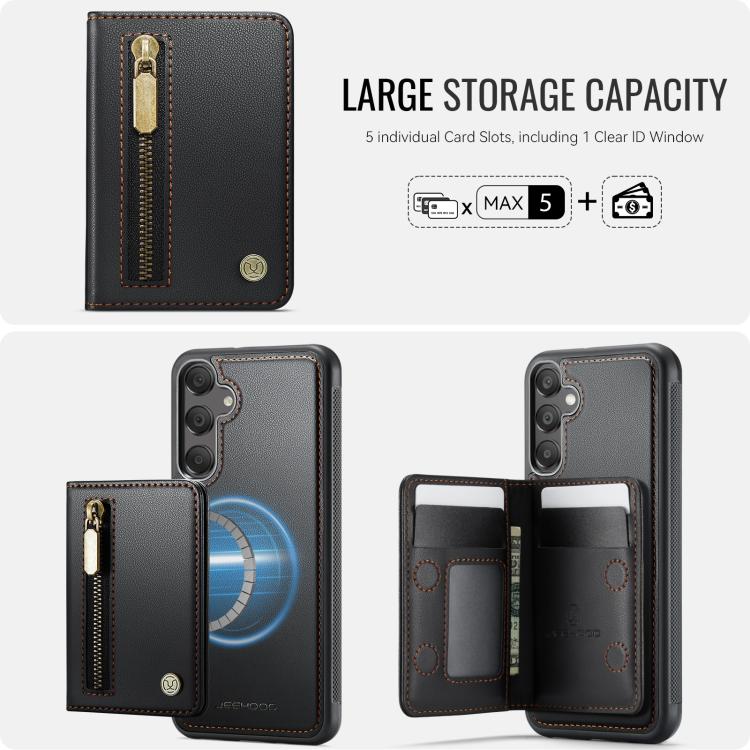 For Samsung Galaxy A15 4G / 5G JEEHOOD J12 Exquisite RFID MagSafe Zipper Card Bag Phone Case(Black)