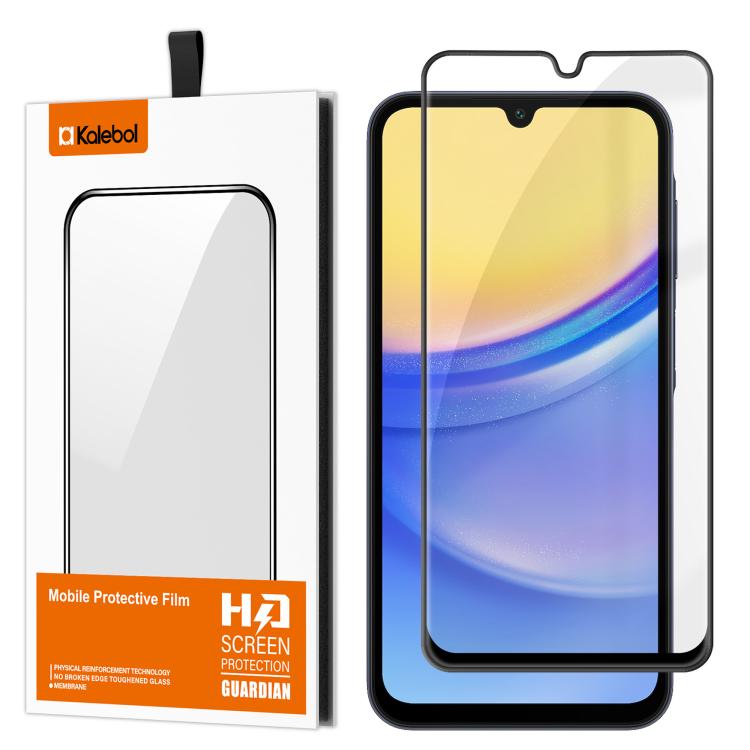 For Samsung Galaxy A15 Kalebol High-Aluminum Screen-Printed Full-Coverage Anti-Fingerprint Black-Bordered HD Tempered Glass Film