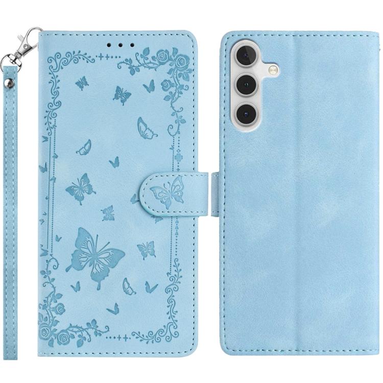 For Samsung Galaxy A16 5G / 4G Secret Garden Butterfly Pattern Leather Phone Case(Blue)
