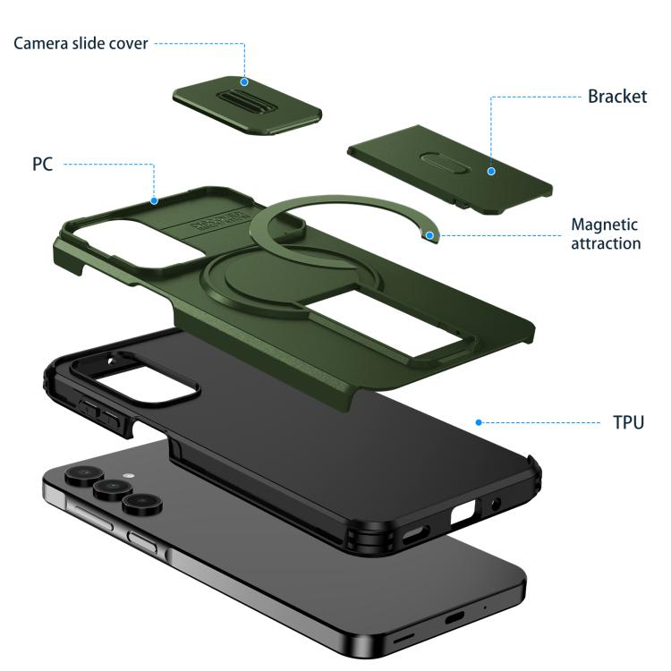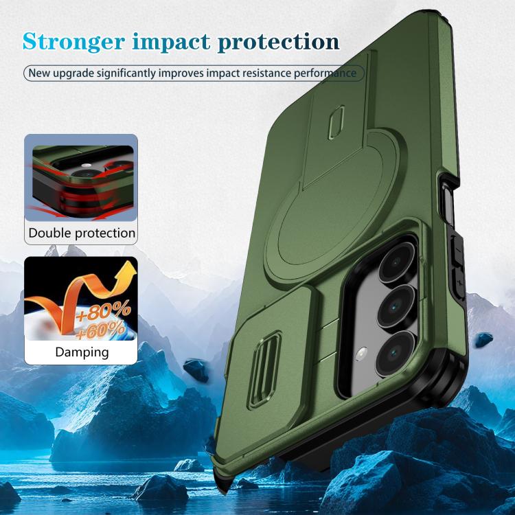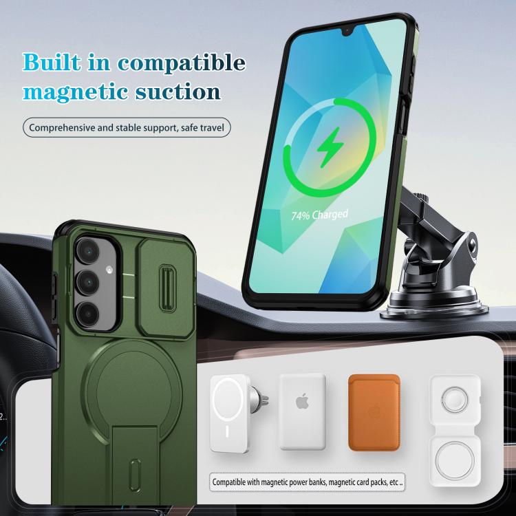 For Samsung Galaxy A16 5G / 4G Sliding Camshield MagSafe Holder Phone Case(Green)
