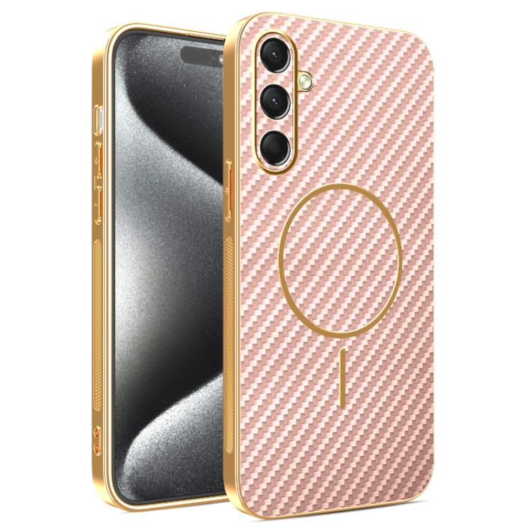 For Samsung Galaxy A16 5G Carbon Fiber Electroplated Thin Ring MagSafe Phone Case(Pink)