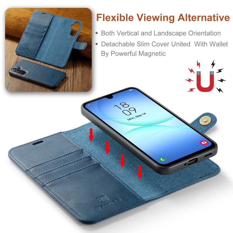 For Samsung Galaxy A17 4G / 5G DG.MING Crazy Horse Texture Detachable Magnetic Leather Case(Blue)