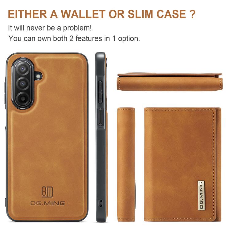 For Samsung Galaxy A17 4G / 5G DG.MING M1 Series 3-Fold Multi Card Wallet + Magnetic Phone Case(Brown)