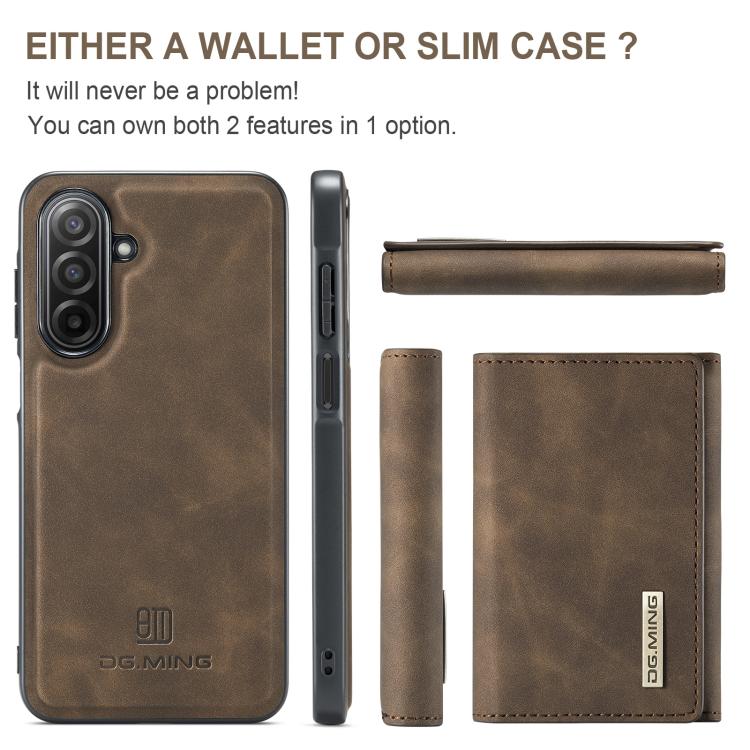 For Samsung Galaxy A17 4G / 5G DG.MING M1 Series 3-Fold Multi Card Wallet + Magnetic Phone Case(Coffee)