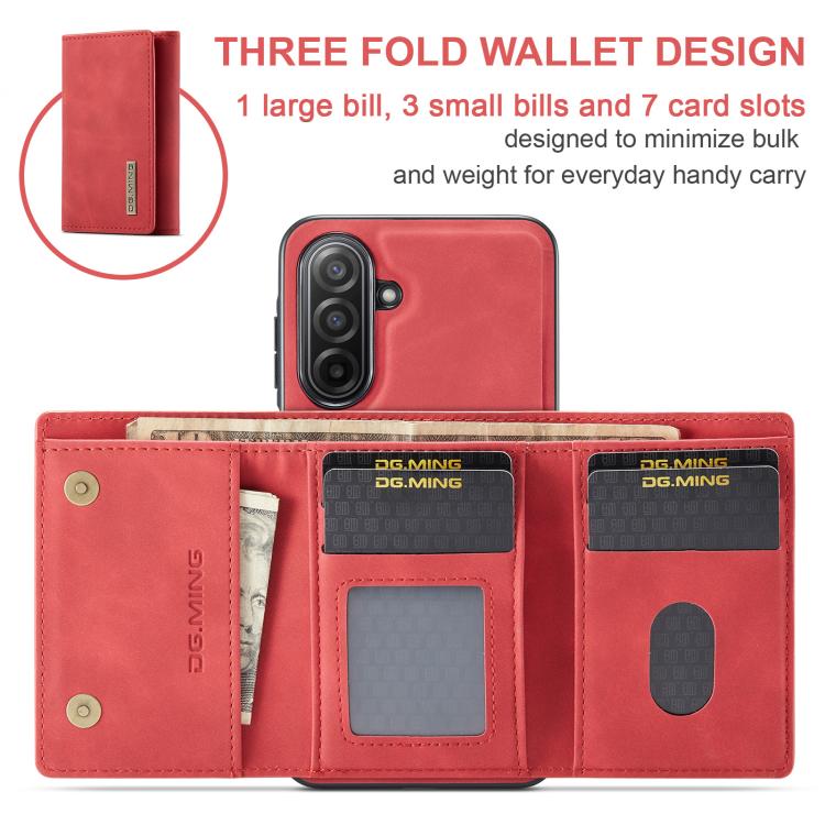 For Samsung Galaxy A17 4G / 5G DG.MING M1 Series 3-Fold Multi Card Wallet + Magnetic Phone Case(Red)