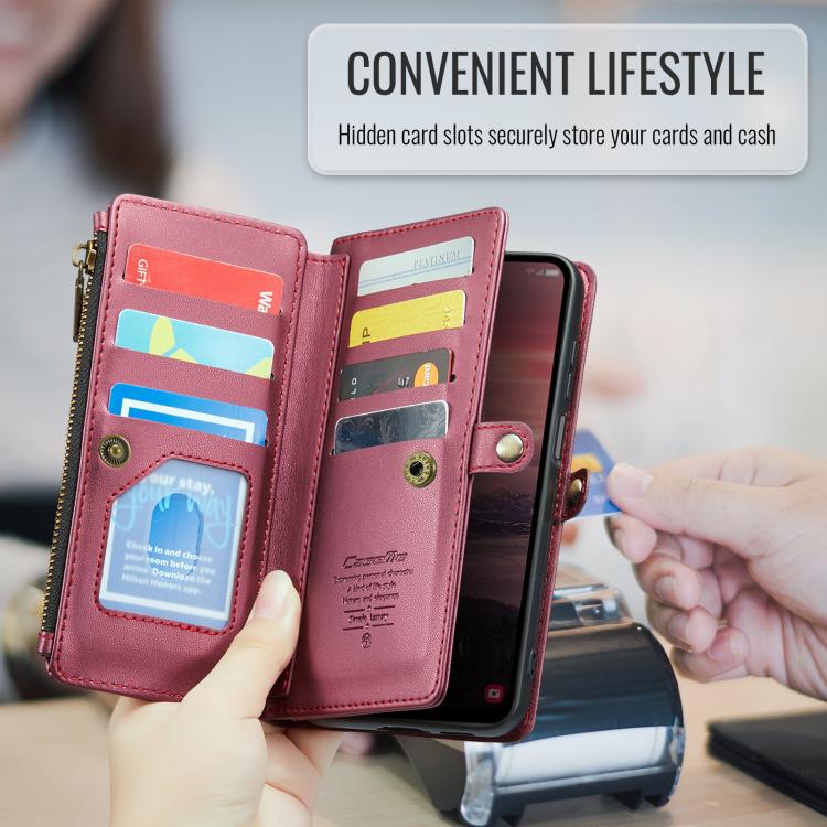 For Samsung Galaxy A17 4G CaseMe C36 Card Slots Zipper Wallet RFID Anti-theft Leather Phone Case(Red)
