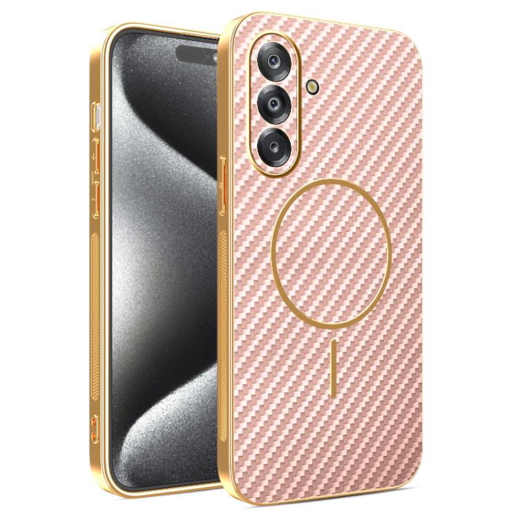 For Samsung Galaxy A17 5G Carbon Fiber Electroplated Thin Ring MagSafe Phone Case(Pink)