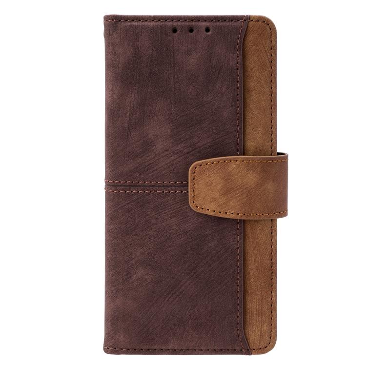 For Samsung Galaxy A17 5G Color Stitching Skin Feel Leather RFID Blocking Phone Case(Brown)