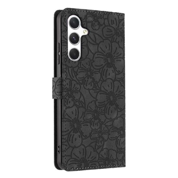 For Samsung Galaxy A17 / A26 Cherry Blossoms Embossed Leather Phone Case(Black)