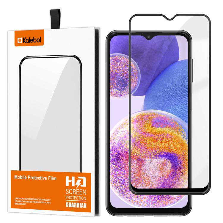 For Samsung Galaxy A23 4G Kalebol High-Aluminum Screen-Printed Full-Coverage Anti-Fingerprint Black-Bordered HD Tempered Glass Film