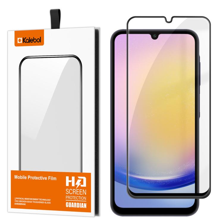 For Samsung Galaxy A25 5G Kalebol High-Aluminum Screen-Printed Full-Coverage Anti-Fingerprint Black-Bordered HD Tempered Glass Film