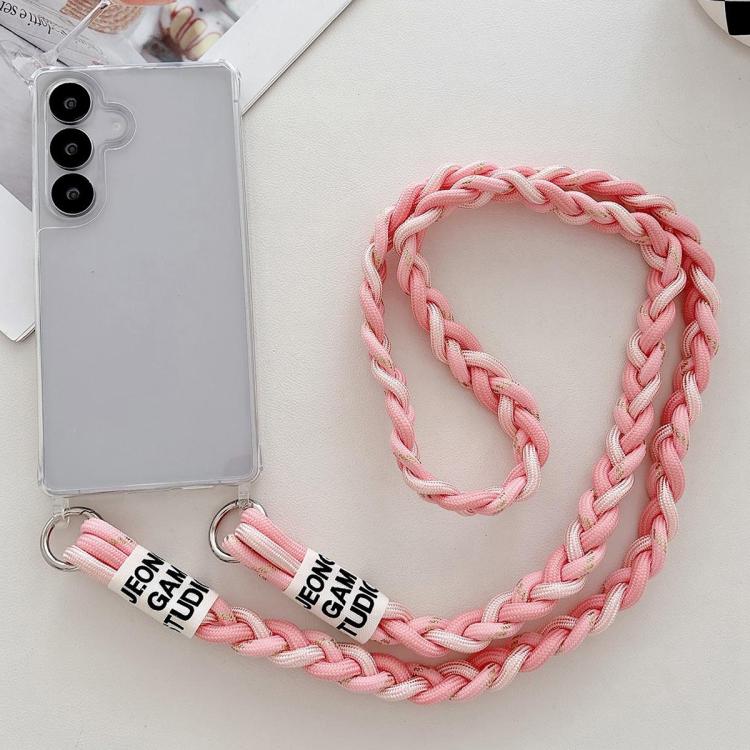 For Samsung Galaxy A25 5G Transparent Acrylic Shockproof Phone Case with Crossbody Lanyard(Pink)
