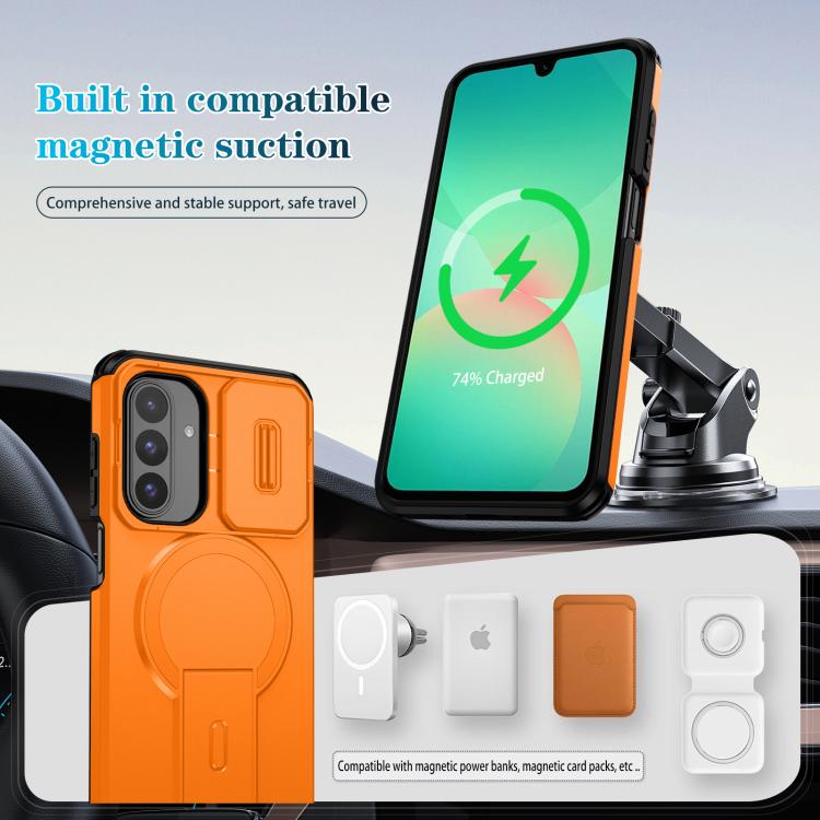 For Samsung Galaxy A26 5G / A17 5G / 4G Sliding Camshield MagSafe Holder Phone Case(Orange)