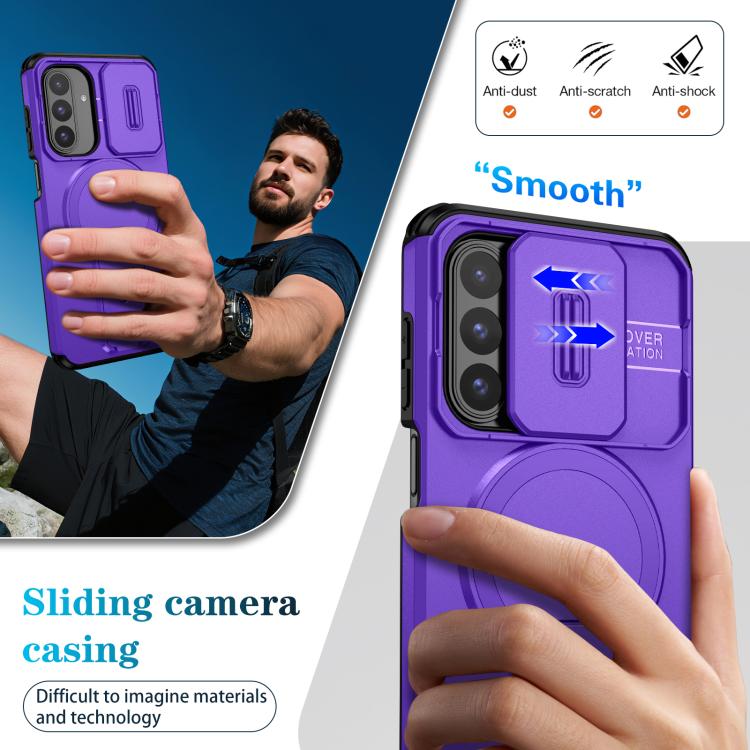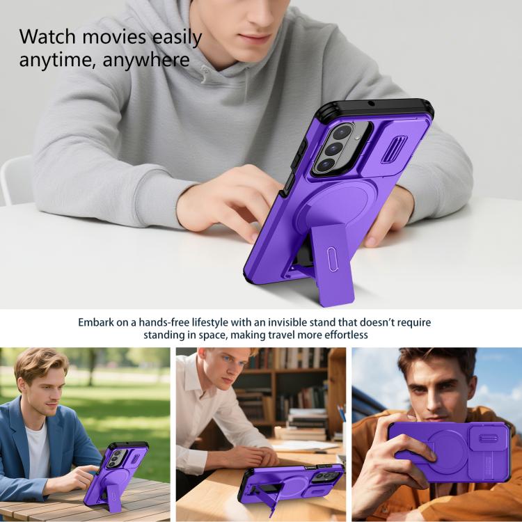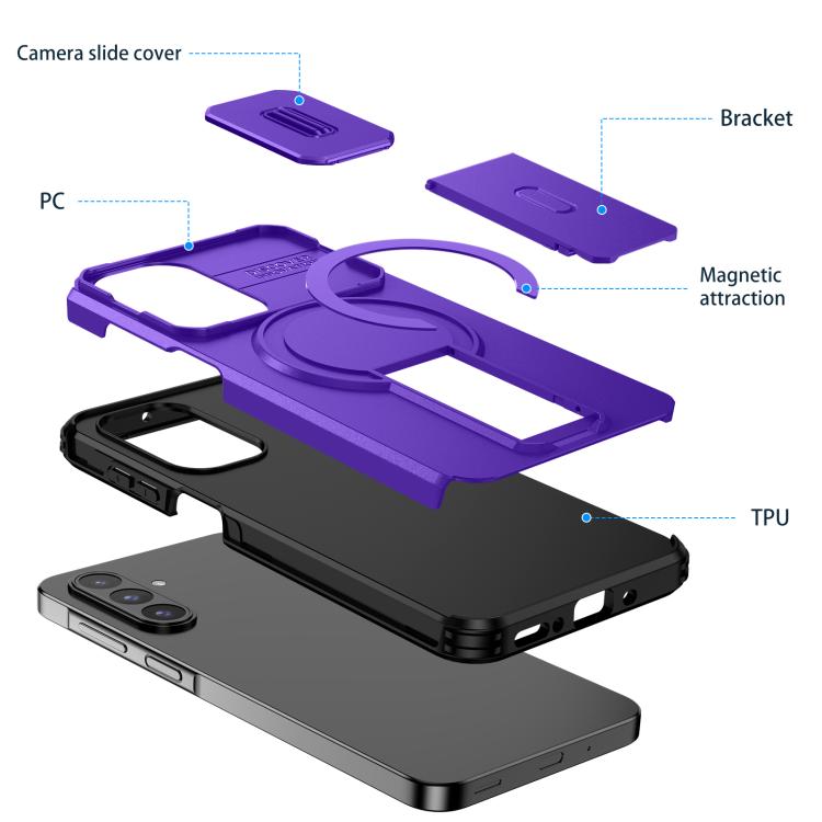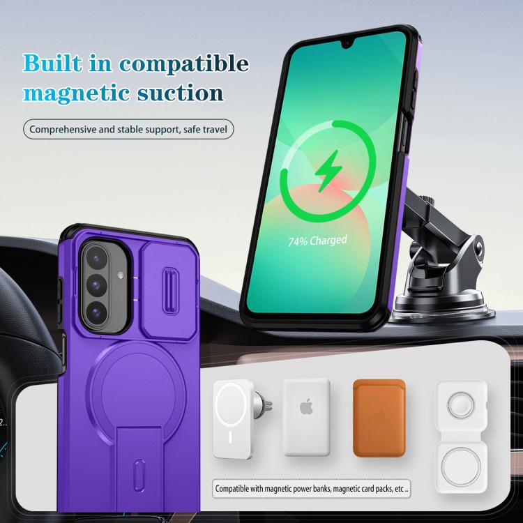 For Samsung Galaxy A26 5G / A17 5G / 4G Sliding Camshield MagSafe Holder Phone Case(Purple)