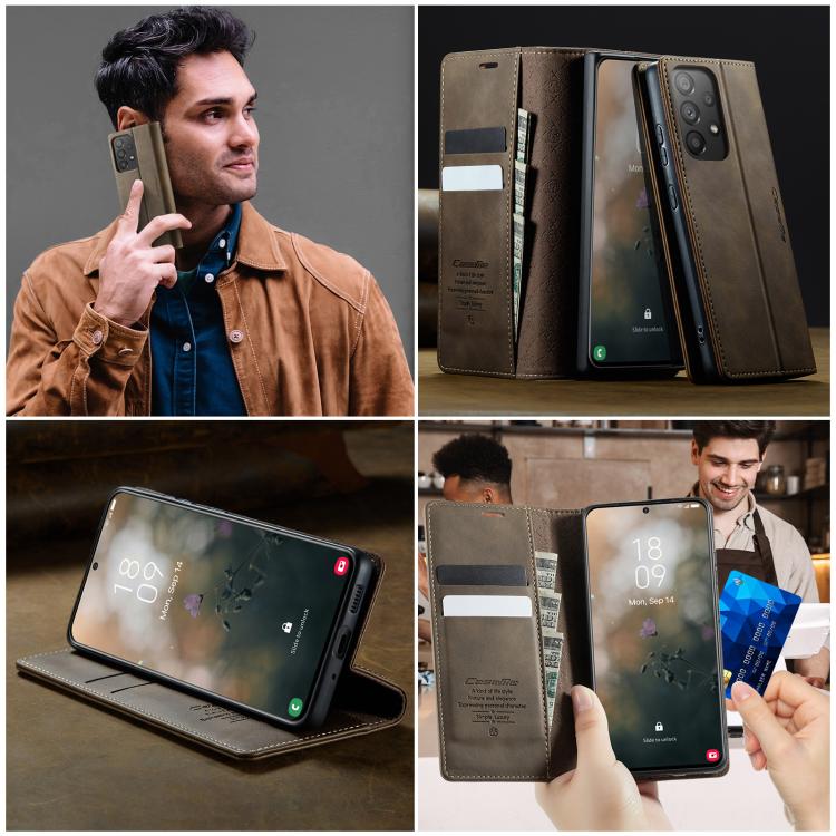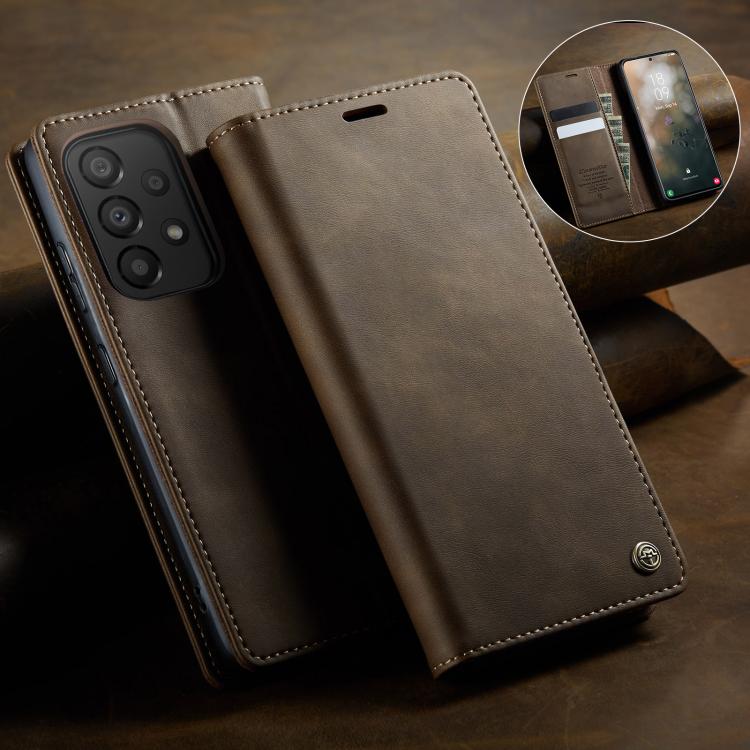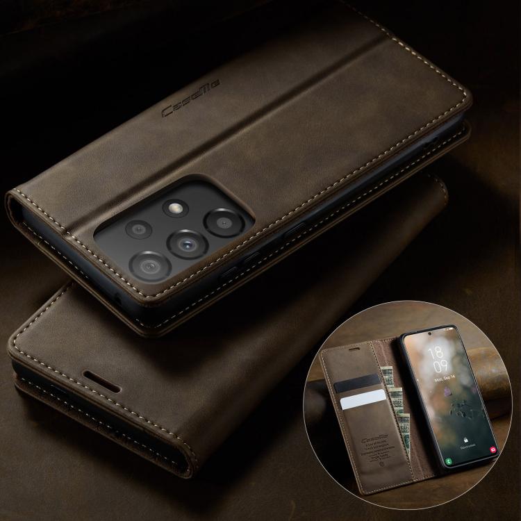 For Samsung Galaxy A33 5G CaseMe 033 Calf Leather Lining Microfibre RFID Blocking Phone Case(Coffee)