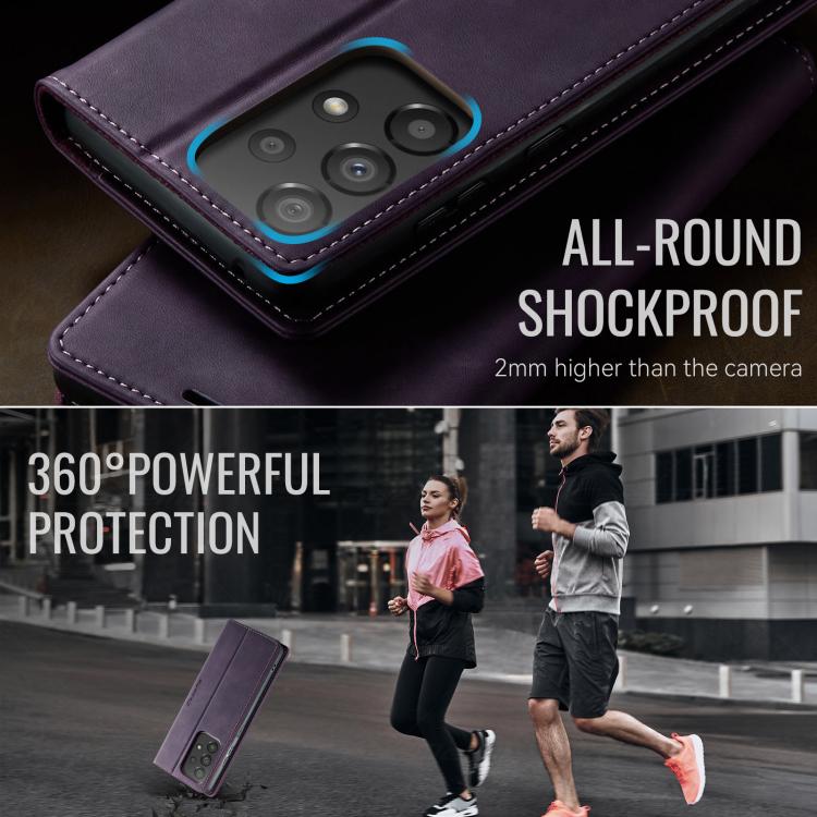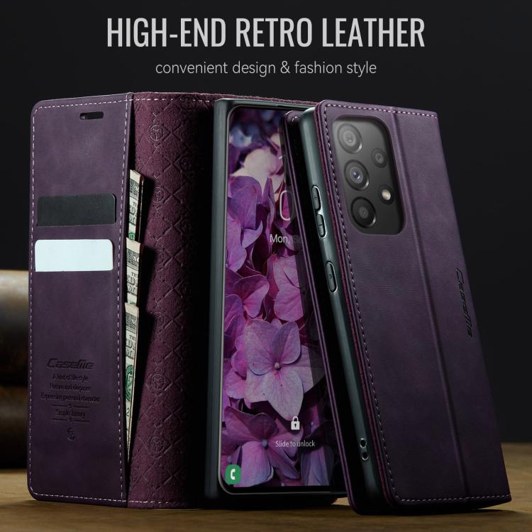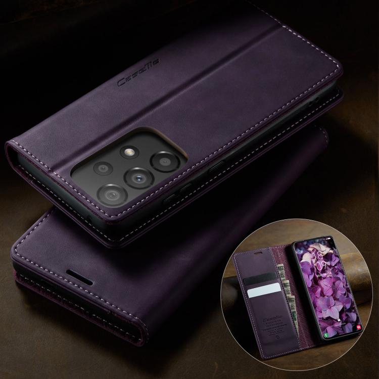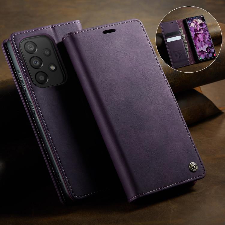 For Samsung Galaxy A33 5G CaseMe 033 Calf Leather Lining Microfibre RFID Blocking Phone Case(Purple)