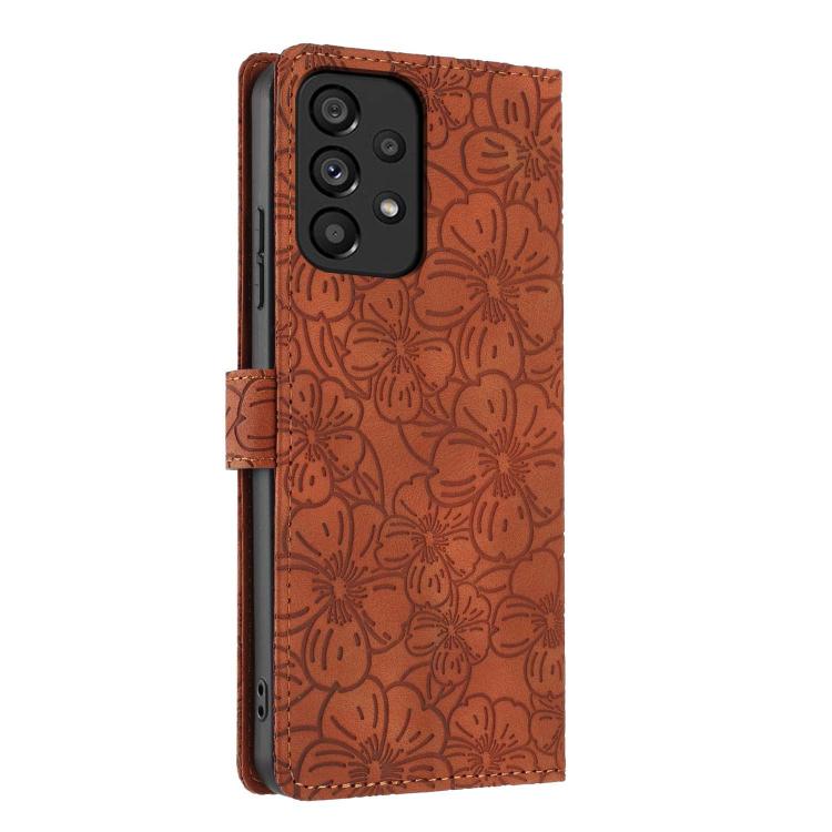For Samsung Galaxy A33 5G Cherry Blossoms Embossed Leather Phone Case(Brown)