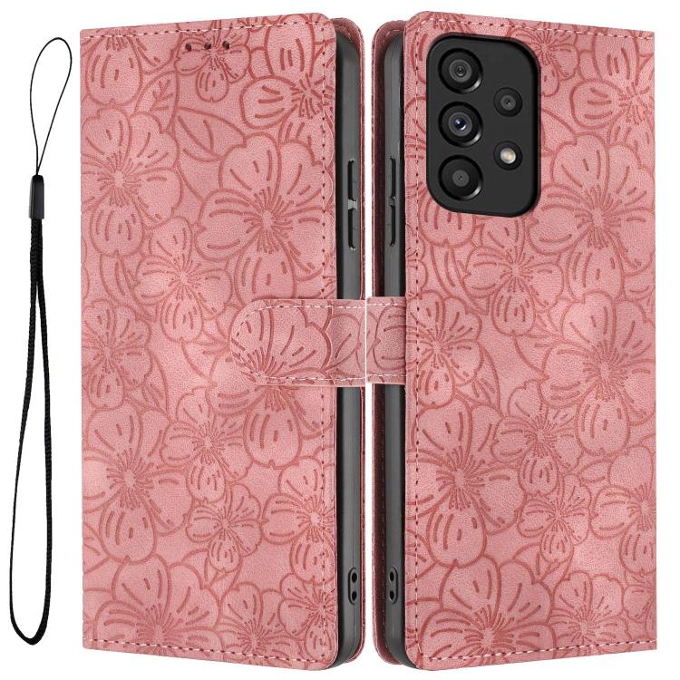 For Samsung Galaxy A33 5G Cherry Blossoms Embossed Leather Phone Case(Pink)