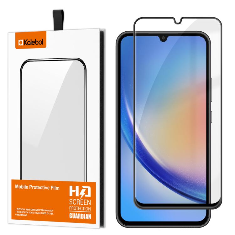 For Samsung Galaxy A34 5G Kalebol High-Aluminum Screen-Printed Full-Coverage Anti-Fingerprint Black-Bordered HD Tempered Glass Film