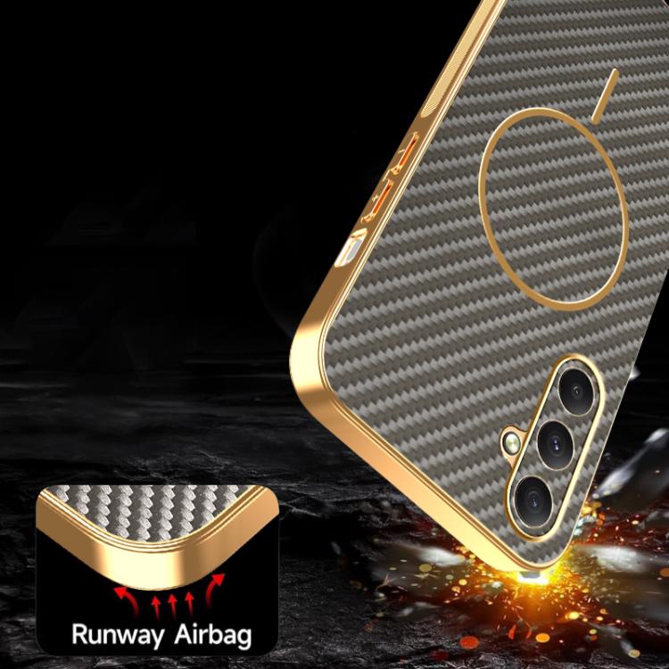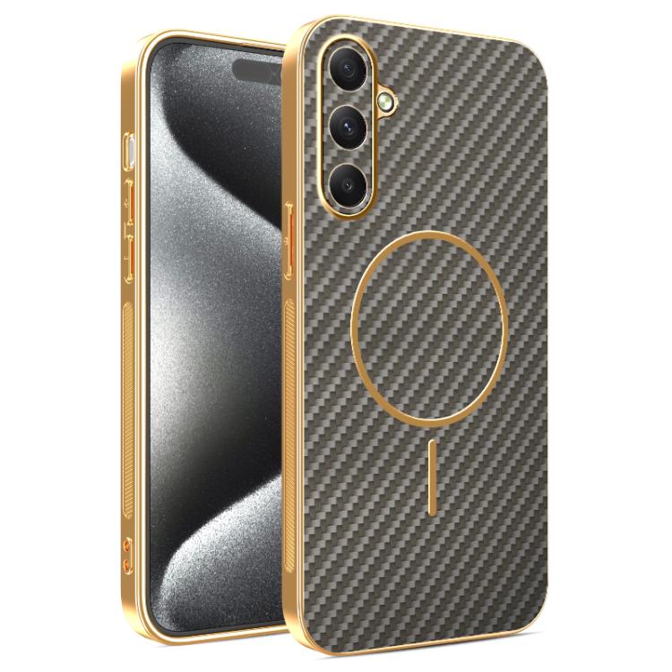 For Samsung Galaxy A35 5G Carbon Fiber Electroplated Thin Ring MagSafe Phone Case(Coffee)