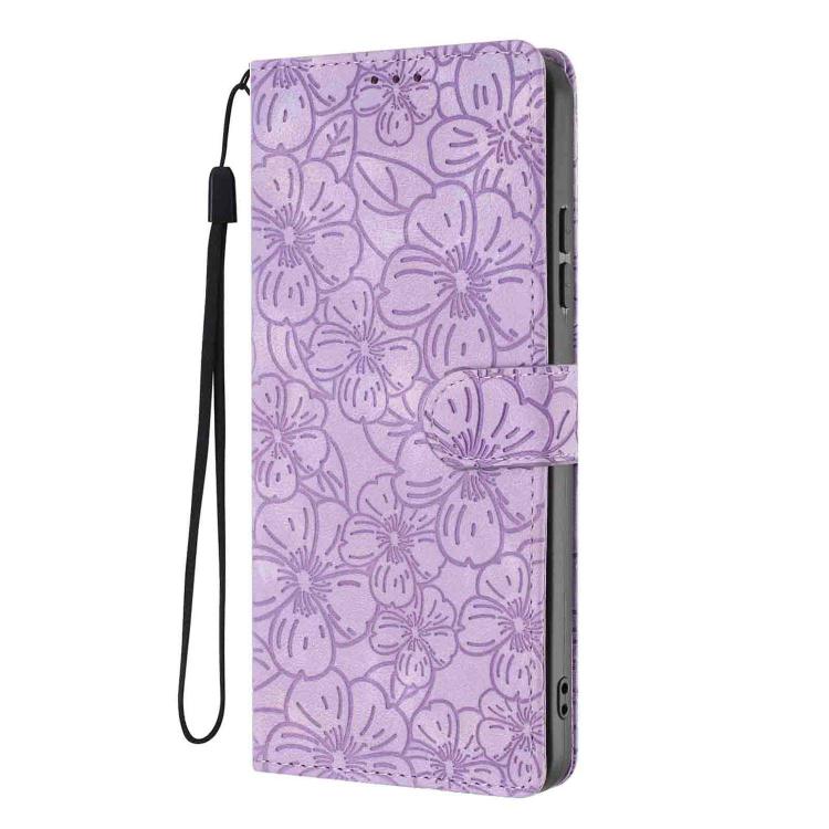 For Samsung Galaxy A35 5G Cherry Blossoms Embossed Leather Phone Case(Purple)