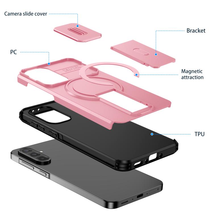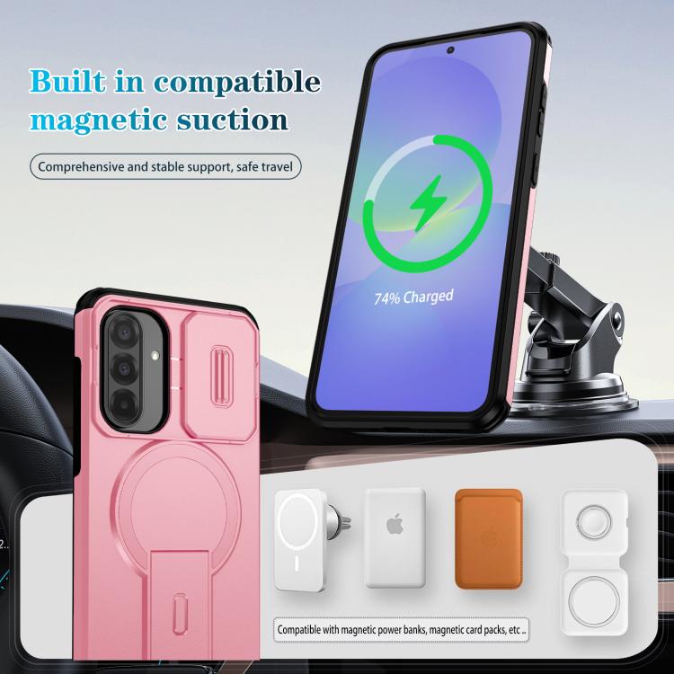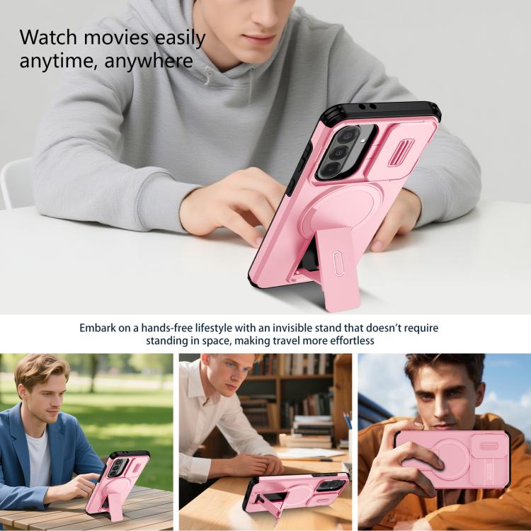 For Samsung Galaxy A36 5G / A56 5G Sliding Camshield MagSafe Holder Phone Case(Pink)