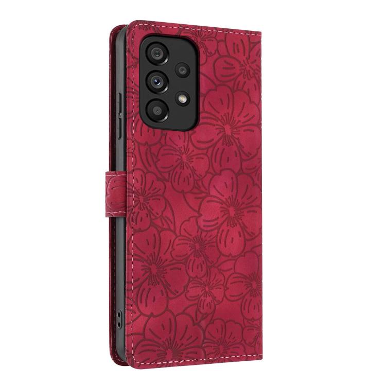 For Samsung Galaxy A53 Cherry Blossoms Embossed Leather Phone Case(Red)