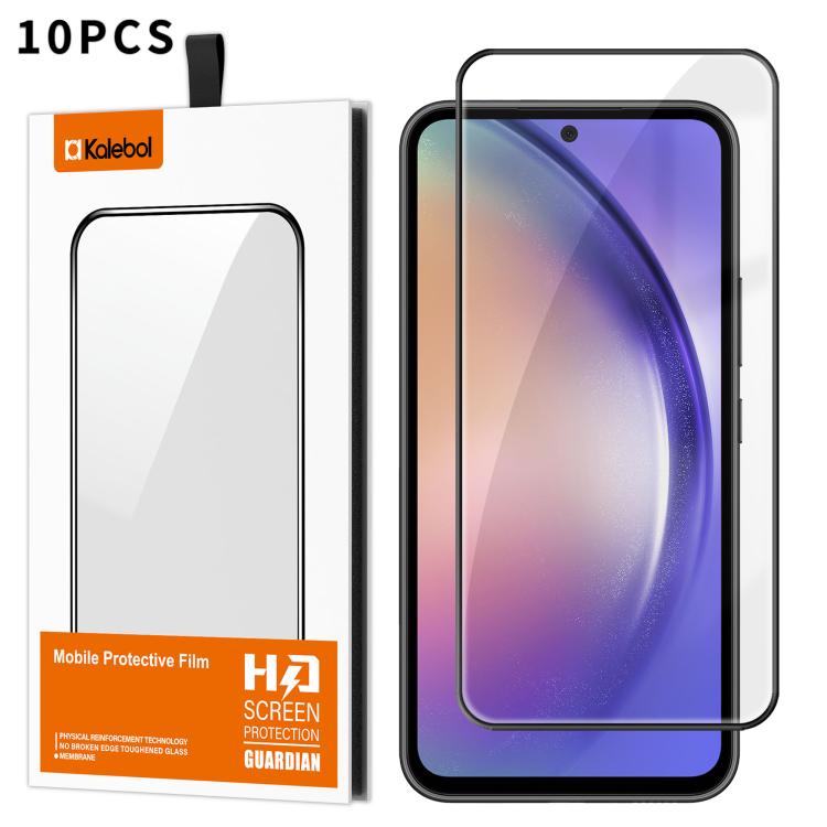 For Samsung Galaxy A54 5G 10pcs Kalebol High-Aluminum Screen-Printed Full-Coverage Anti-Fingerprint Black-Bordered HD Tempered Glass Film