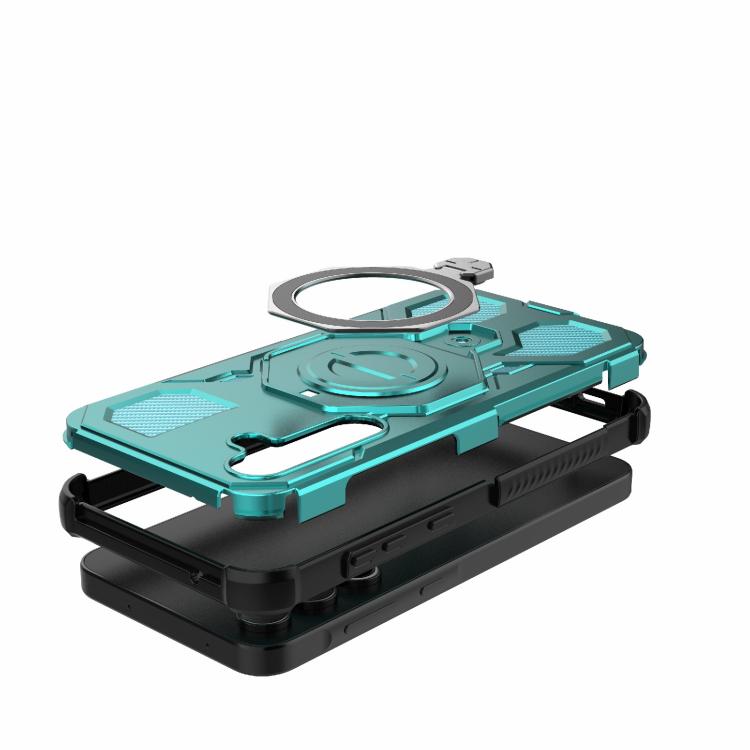 For Samsung Galaxy A55 5G J-20 Solid Color MagSafe Magnetic TPU+PC Phone Case(Lake Blue)