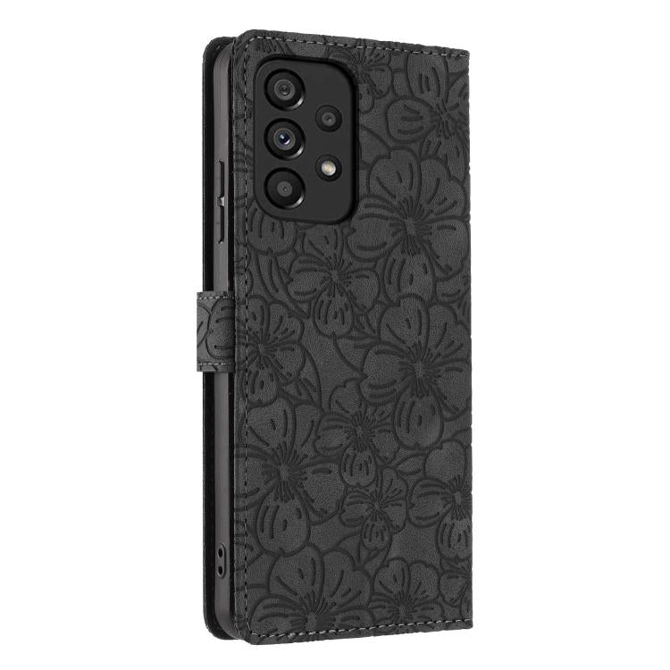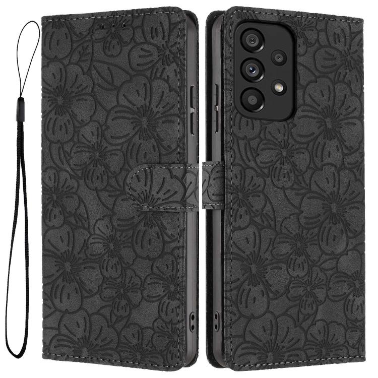 For Samsung Galaxy A73 Cherry Blossoms Embossed Leather Phone Case(Black)