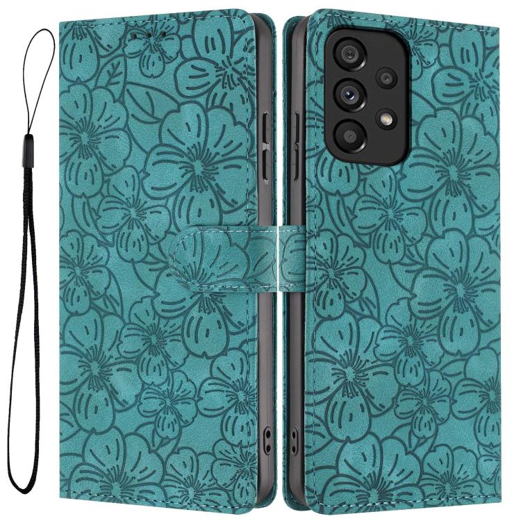 For Samsung Galaxy A73 Cherry Blossoms Embossed Leather Phone Case(Green)