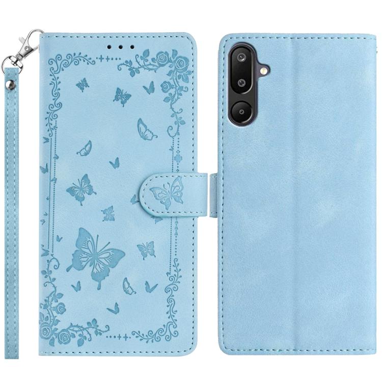 For Samsung Galaxy F16 5G Secret Garden Butterfly Pattern Leather Phone Case(Blue)