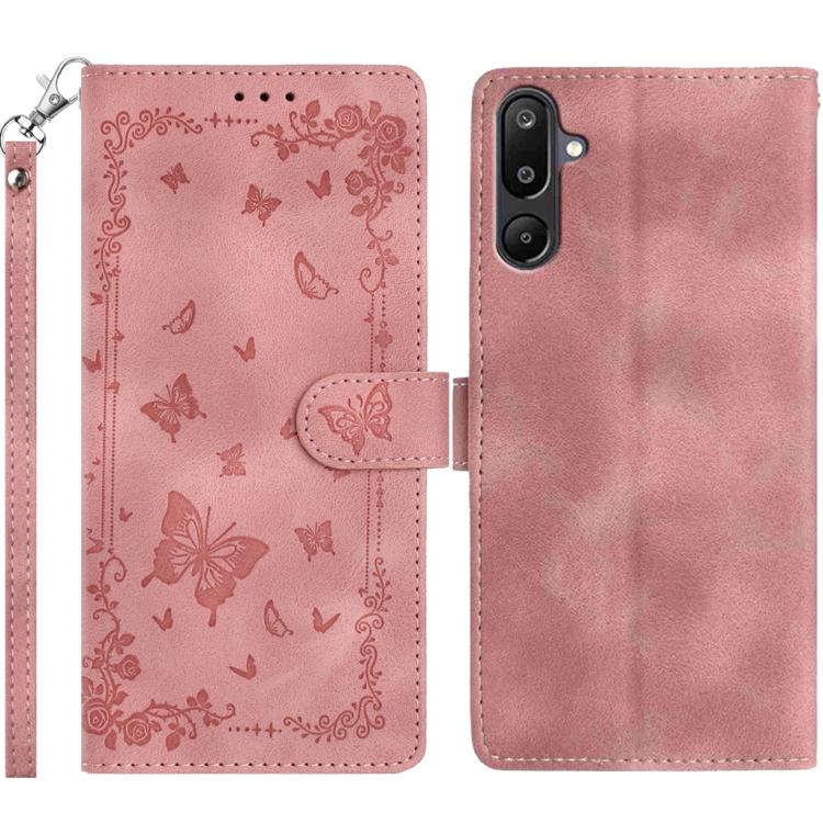 For Samsung Galaxy F16 5G Secret Garden Butterfly Pattern Leather Phone Case(Pink)