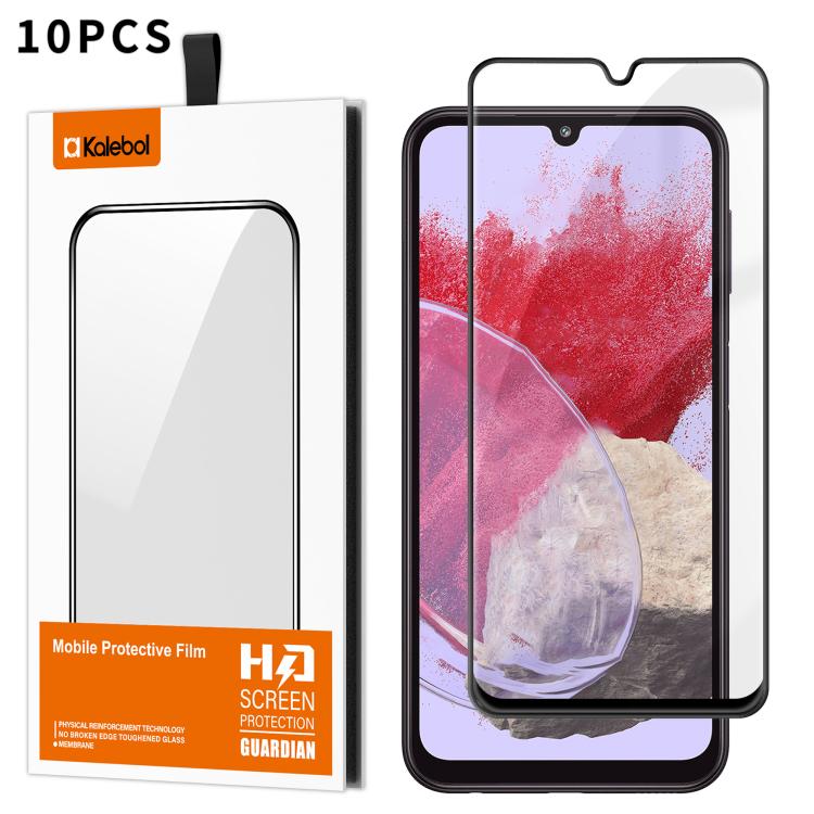 For Samsung Galaxy M34 5G 10pcs Kalebol High-Aluminum Screen-Printed Full-Coverage Anti-Fingerprint Black-Bordered HD Tempered Glass Film