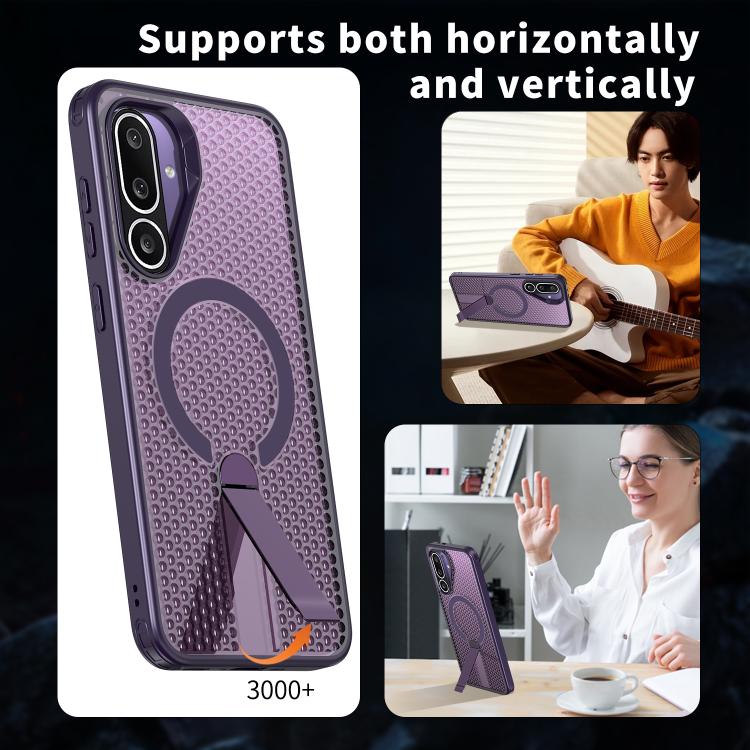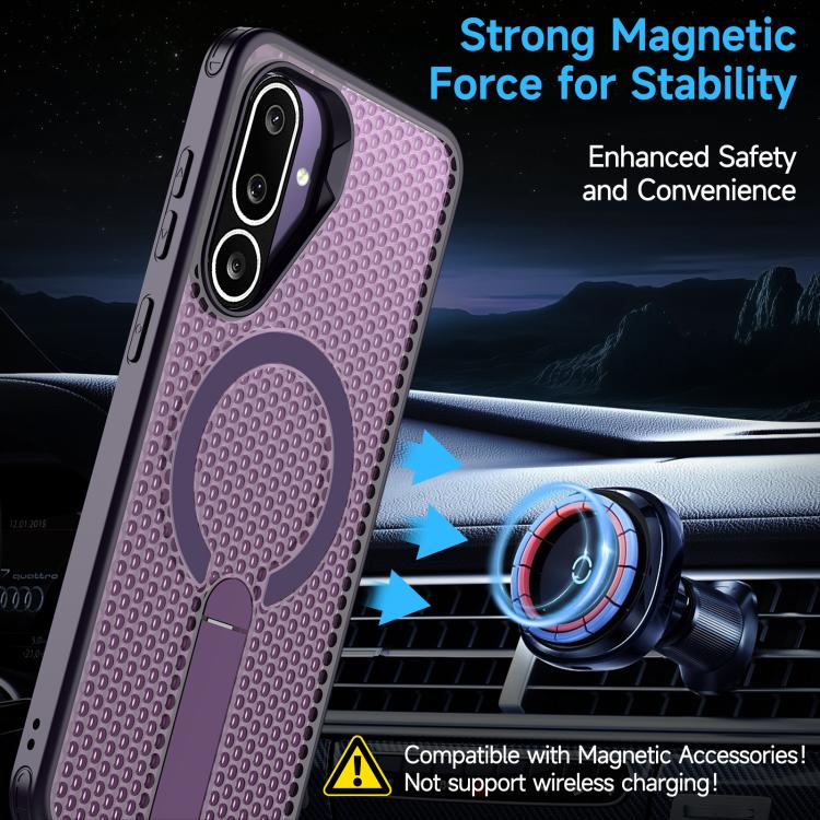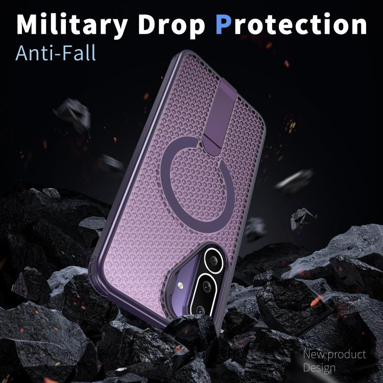 For Samsung Galaxy M56 / F56 5G Honeycomb Cooling MagSafe Holder Phone Case(Purple)