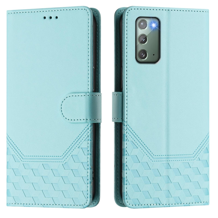 For Samsung Galaxy Note20 Honeycomb Embossing RFID Leather Phone Case(Mint Green)