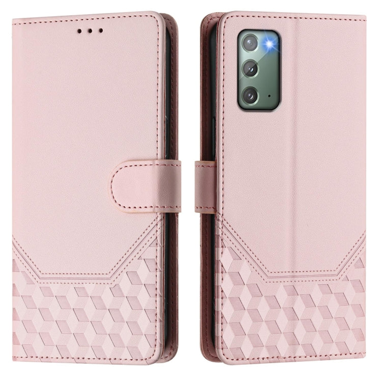 For Samsung Galaxy Note20 Honeycomb Embossing RFID Leather Phone Case(Pink)