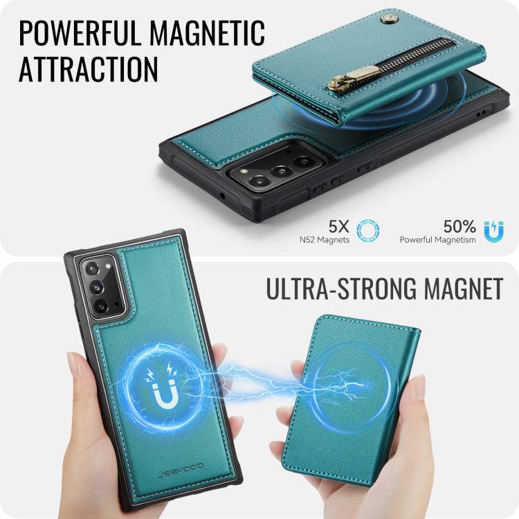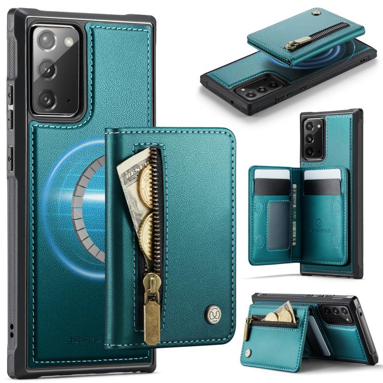 For Samsung Galaxy Note20 JEEHOOD J12 Exquisite RFID MagSafe Zipper Card Bag Phone Case(Green)