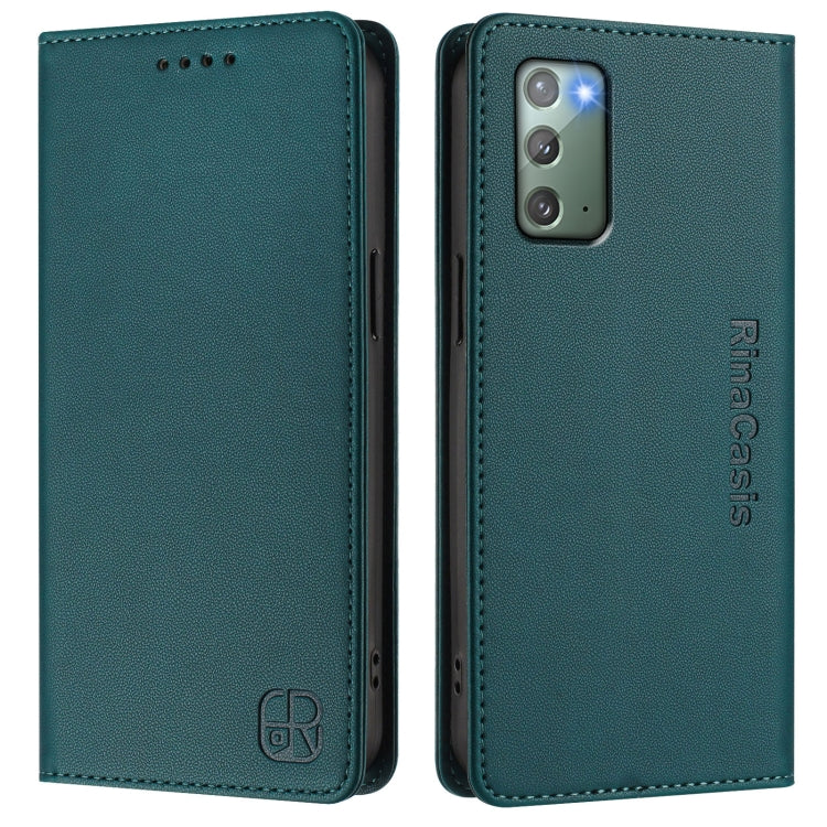 For Samsung Galaxy Note20 RC01 Dual-Folded Magnetic Suction RFID Leather Phone Case(Dark Green)