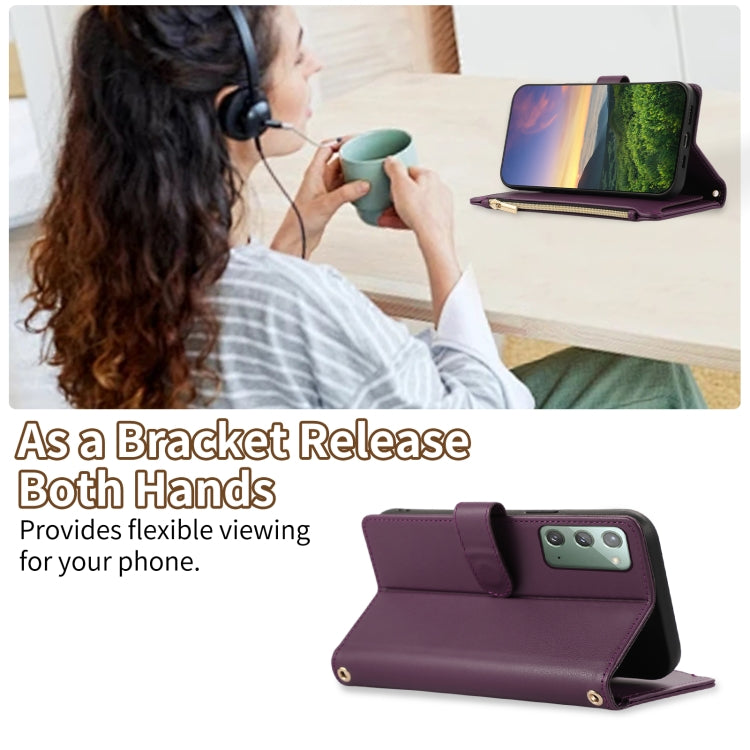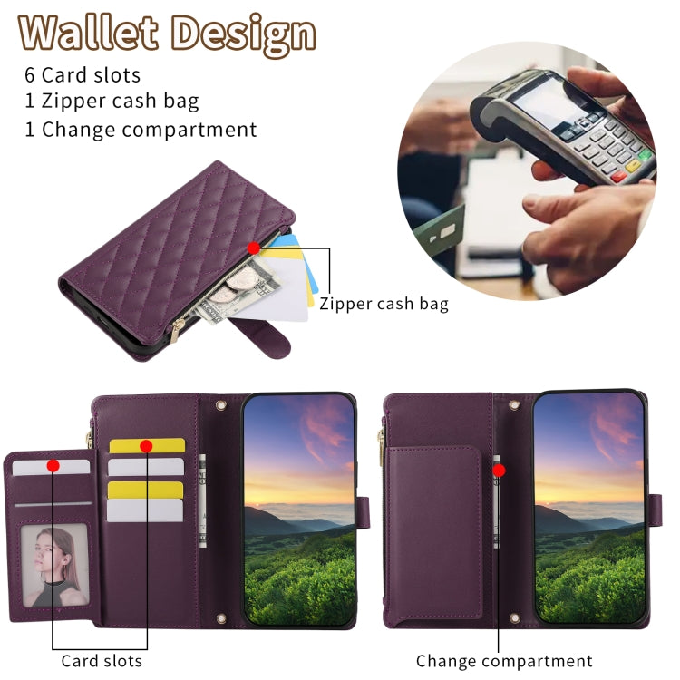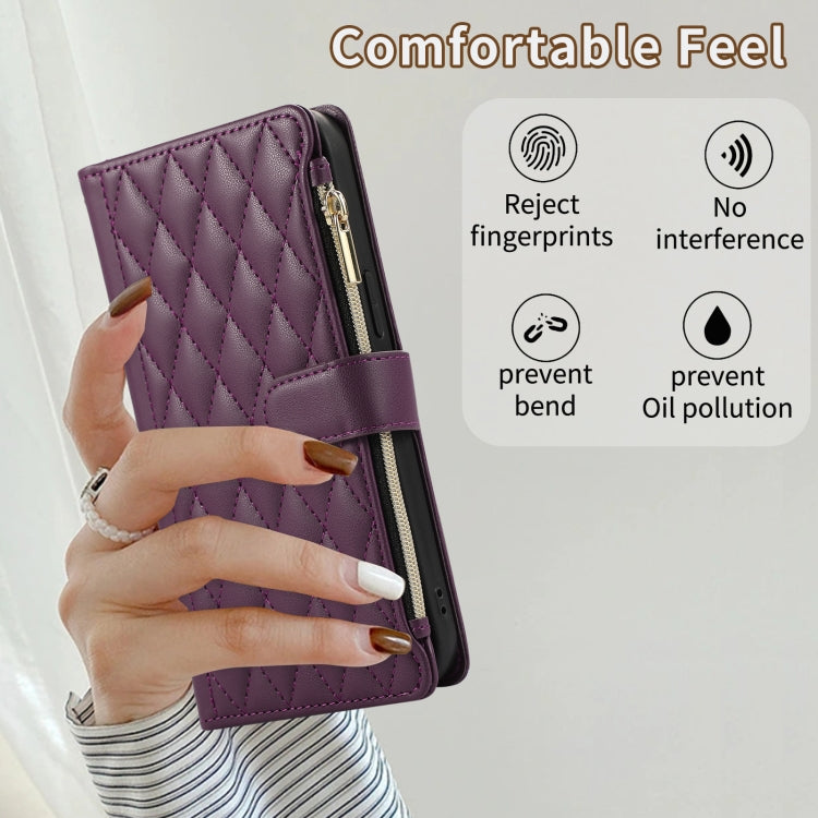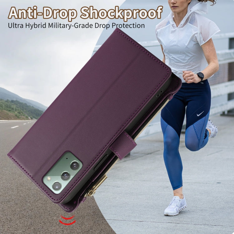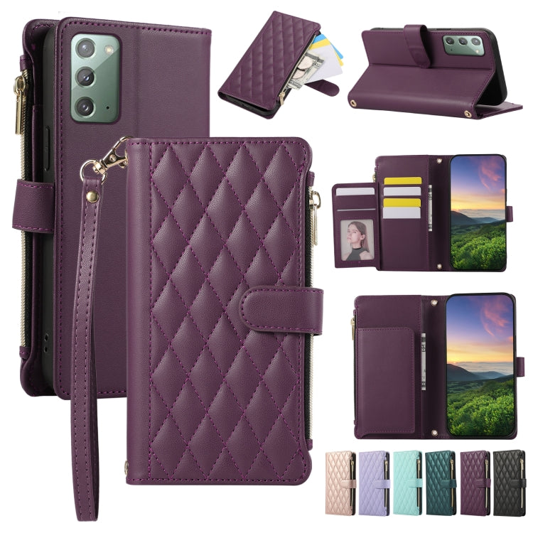 For Samsung Galaxy Note20 Rhombic Zipper Wallet Leather Phone Case(Deep Purple)