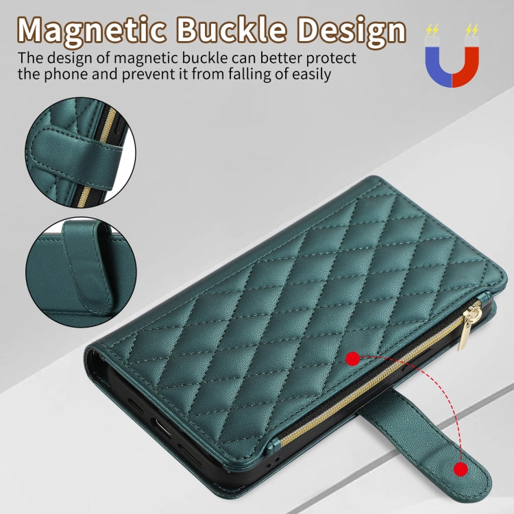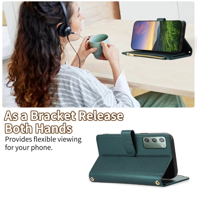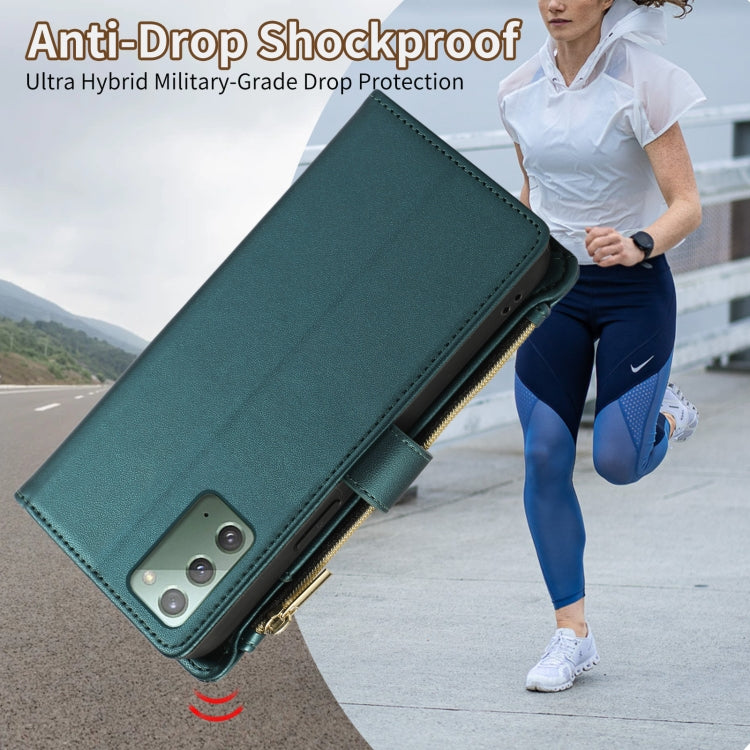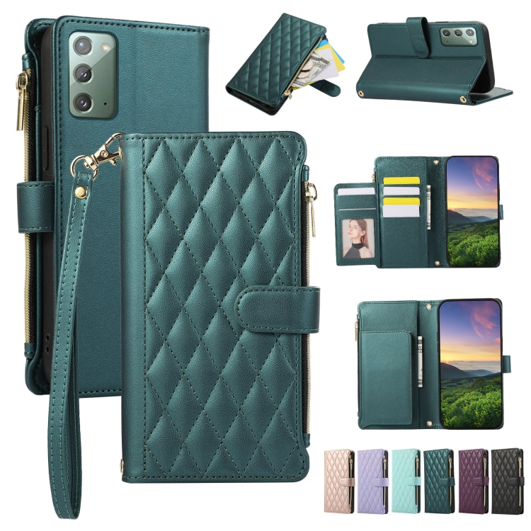 For Samsung Galaxy Note20 Rhombic Zipper Wallet Leather Phone Case(Green)