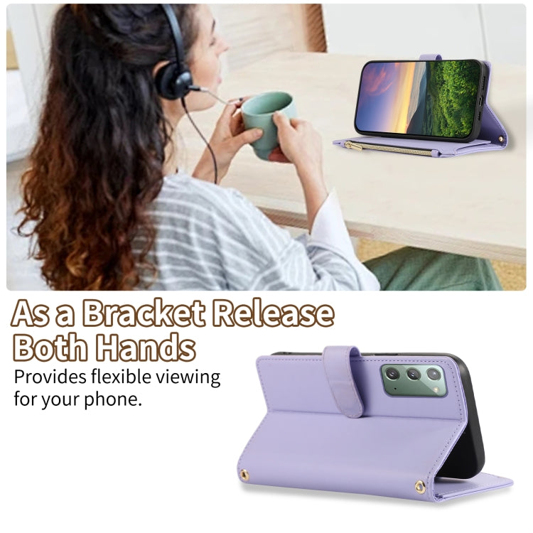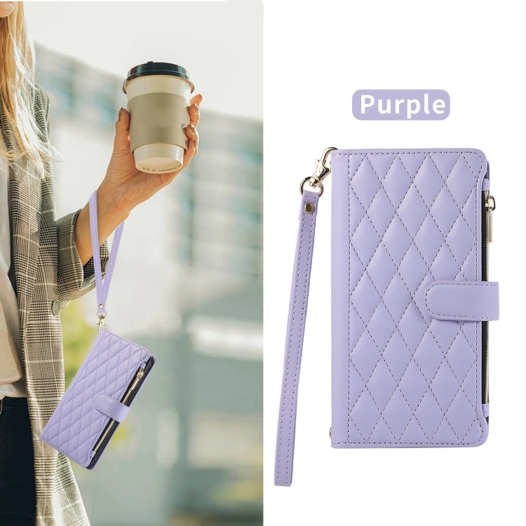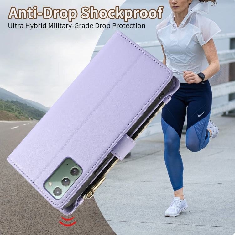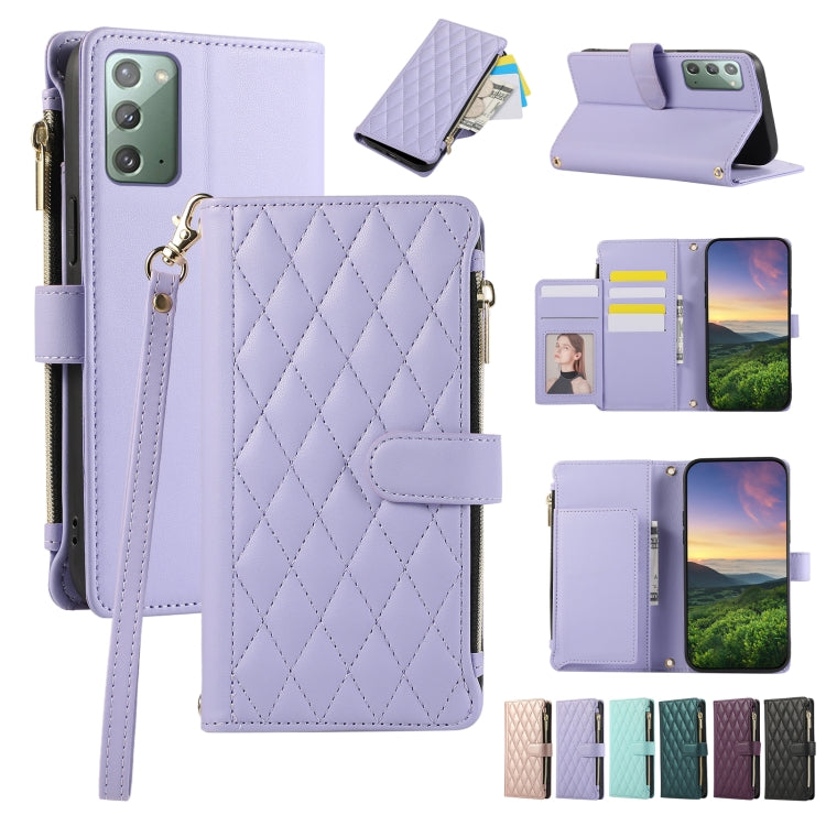 For Samsung Galaxy Note20 Rhombic Zipper Wallet Leather Phone Case(Purple)