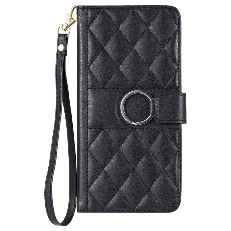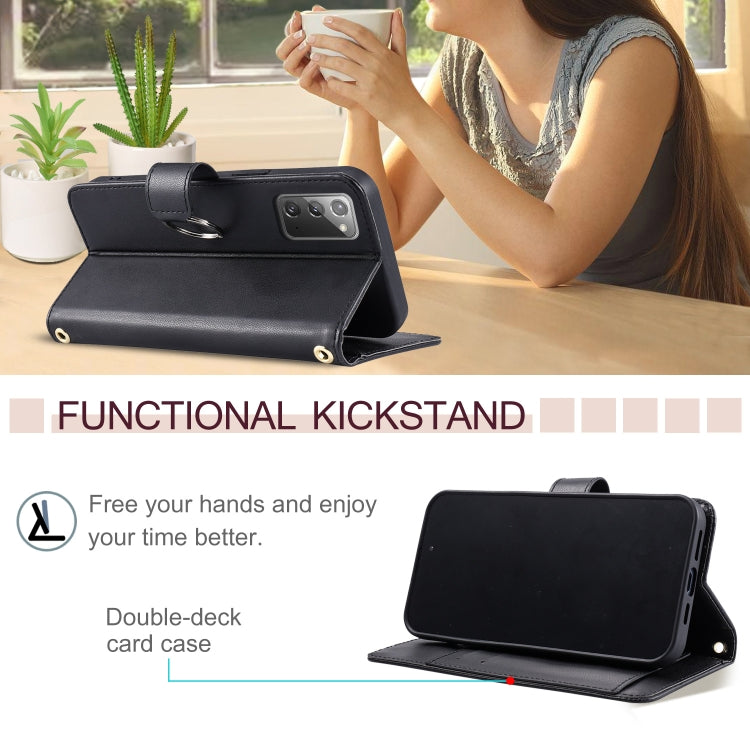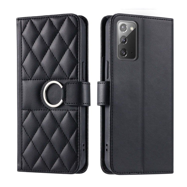 For Samsung Galaxy Note20 Ring Buckle Rhombic Leather Phone Case(Black)