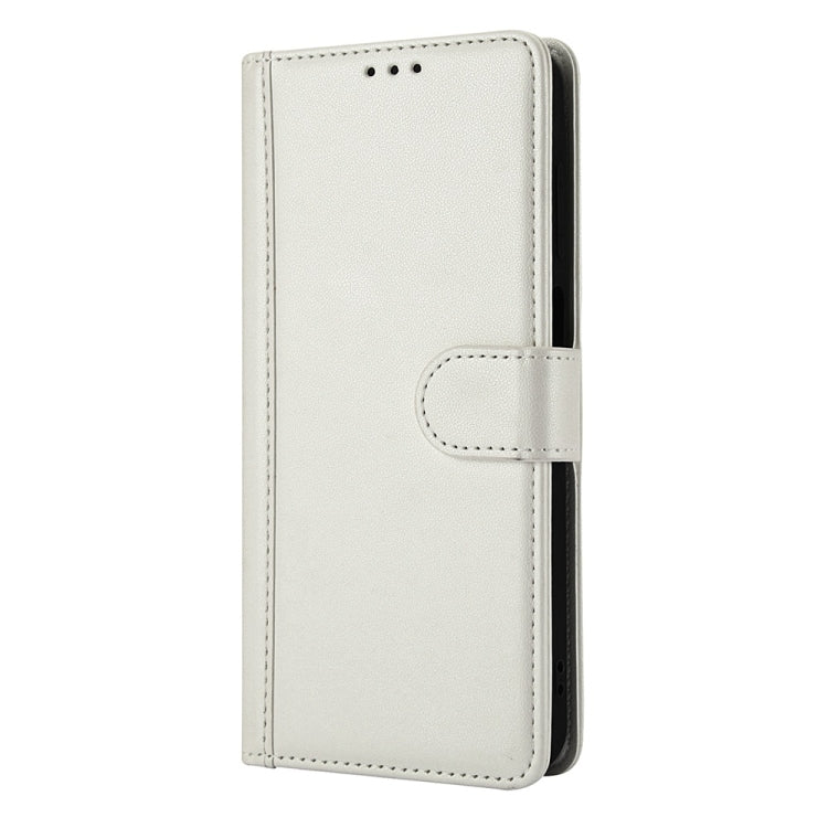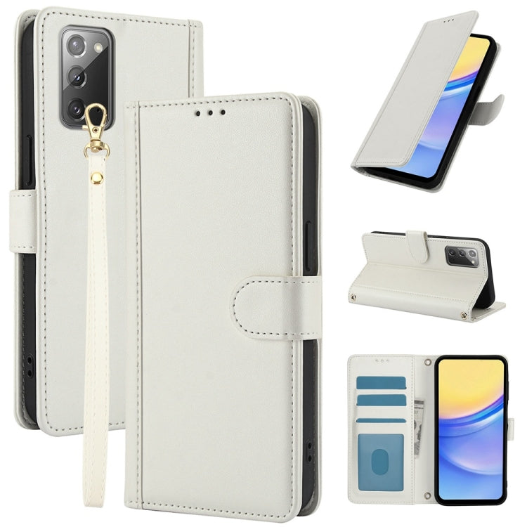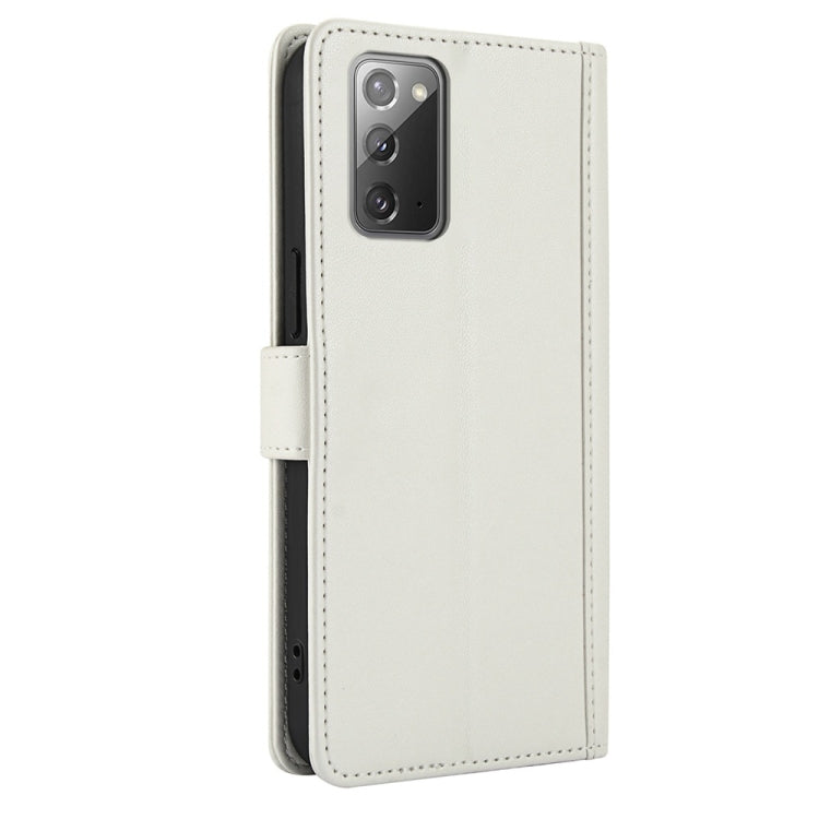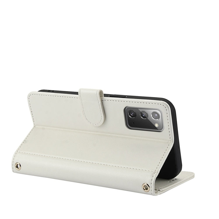 For Samsung Galaxy Note20 Skin Feel Pure Color Card Slots Leather Phone Case with Dual Lanyard(White)