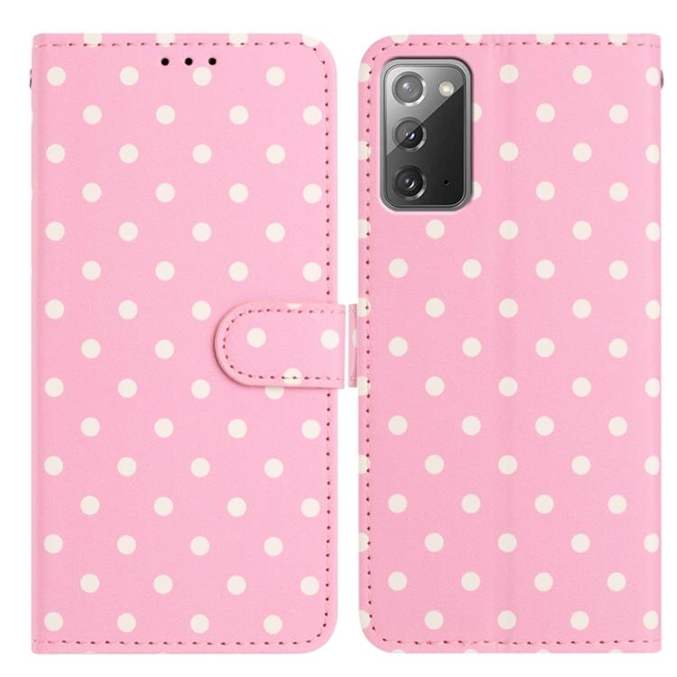 For Samsung Galaxy Note20 Small Dots Pattern Vegan Leather Phone Case(Pink)