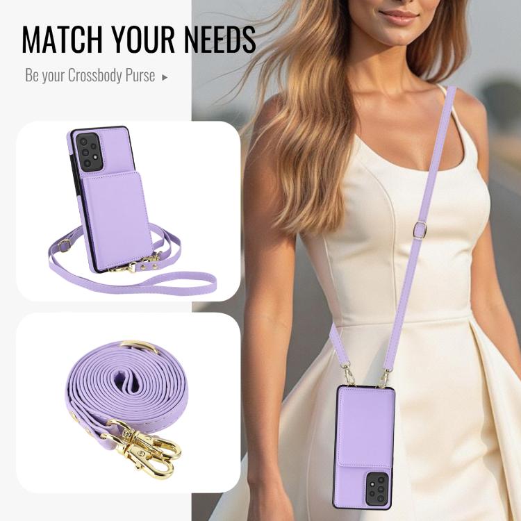 For Samsung Galaxy Note20 Ultra Crossbody Dual-buckle Wallet RFID Back Leather Phone Case(Light Purple)