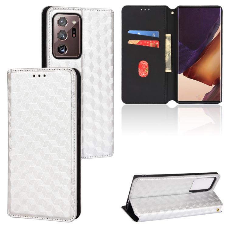 For Samsung Galaxy Note20 Ultra Cubic Grid Texture Flip Leather Phone Case(Silver)