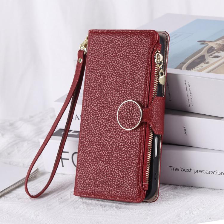 For Samsung Galaxy Note20 Ultra Round Buckle Zipper Wallet Leather Phone Case with Crossbody Strap(Red)