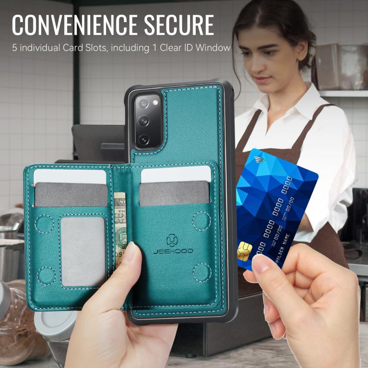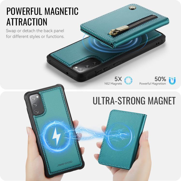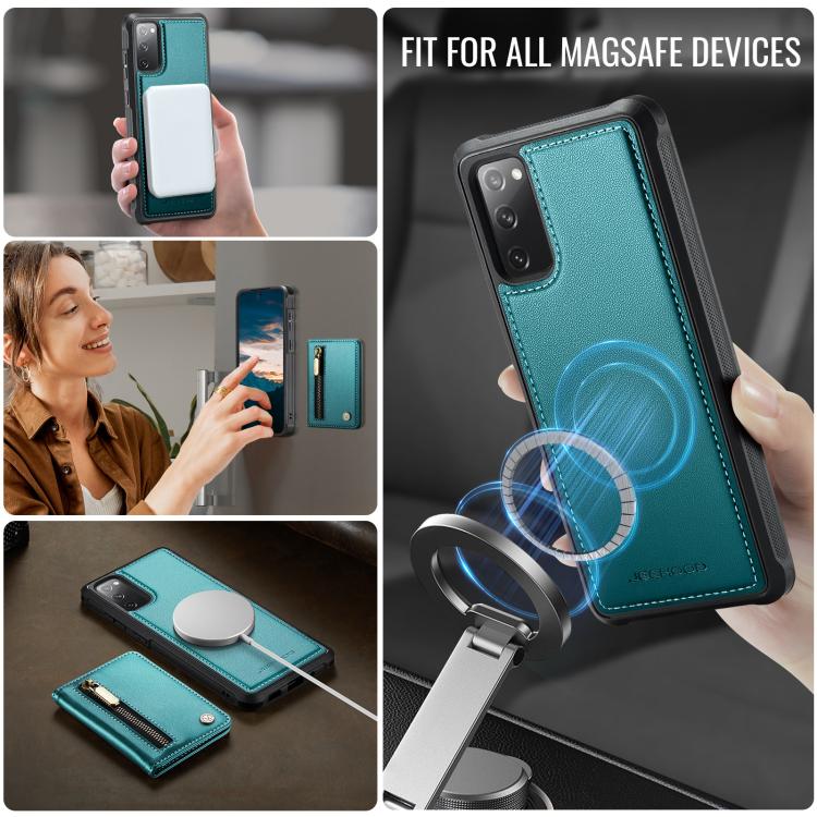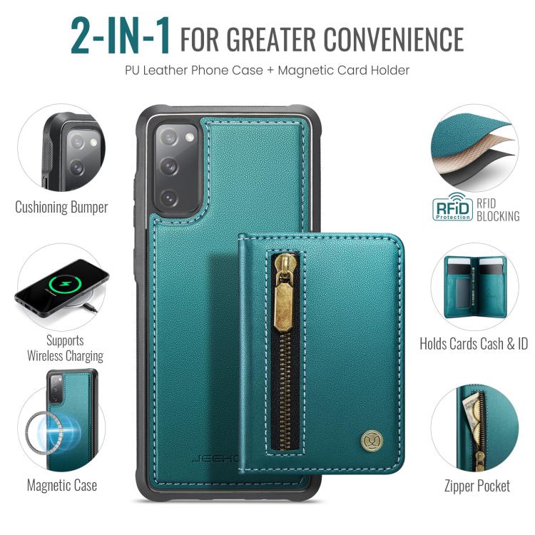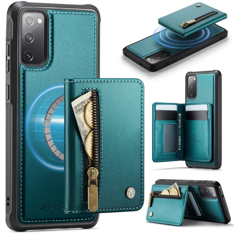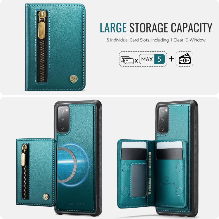 For Samsung Galaxy S20 FE 5G JEEHOOD J12 Exquisite RFID MagSafe Zipper Card Bag Phone Case(Green)