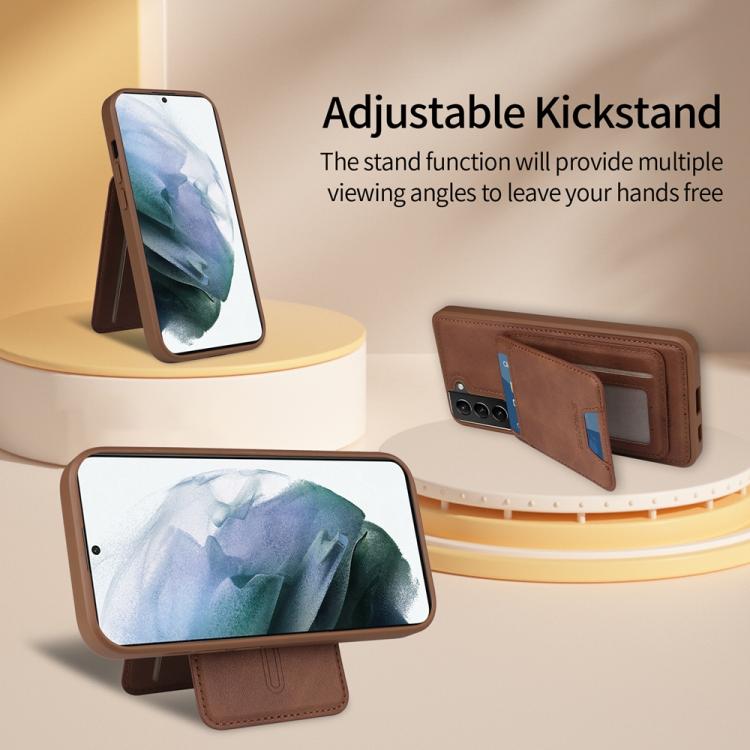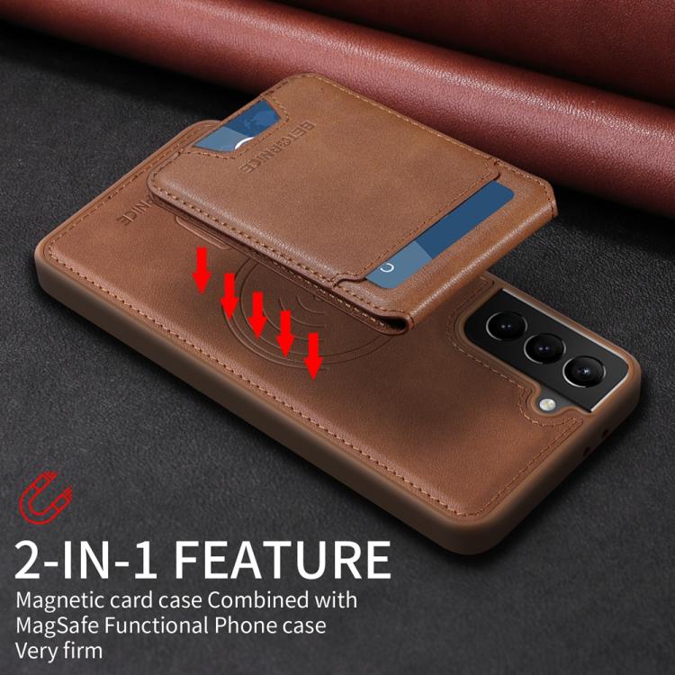 For Samsung Galaxy S21+ 5G BETOPNICE Vertical Flip Detachable MagSafe Wallet Phone Case(Brown)